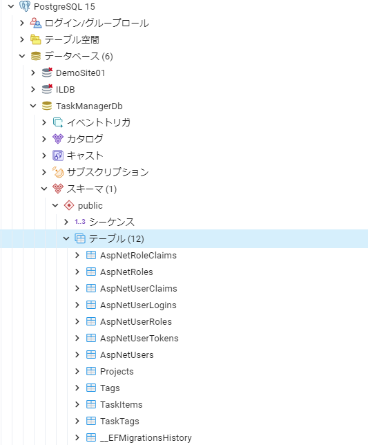 "DefaultConnection": "Host=localhost;Database=TaskManagerDb;Username=postgres;Password=あなたのパスワード"