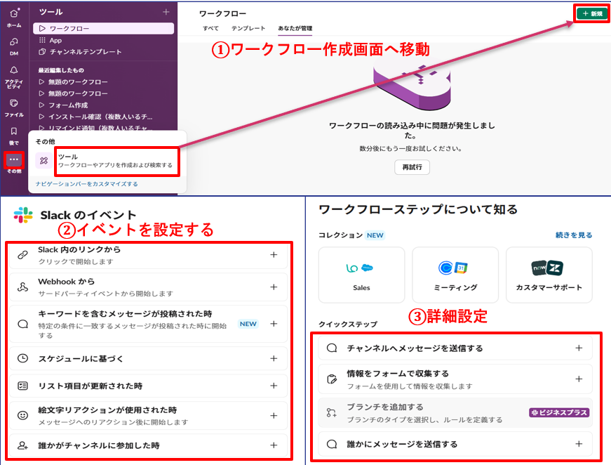 Slackには「ワークフロー」という、自動でやってくれる便利な機能があります。