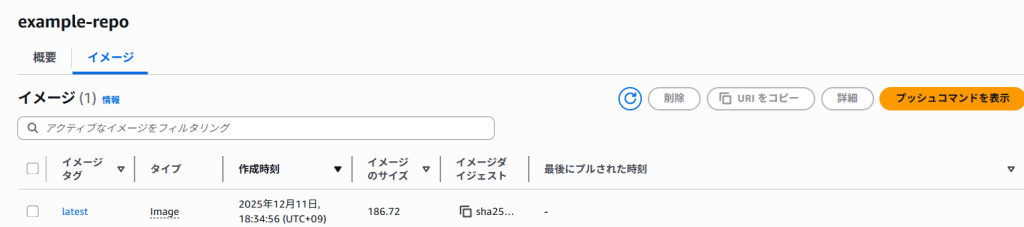 docker push <accountID>.dkr.ecr.ap-northeast-1.amazonaws.com/example-repo:latest