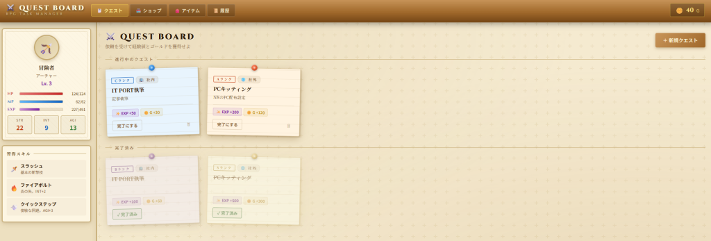 ・RPG風のタスク管理アプリ