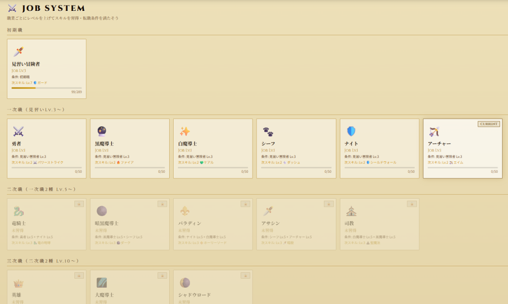 ・レベルが上がると上位職に転職できる